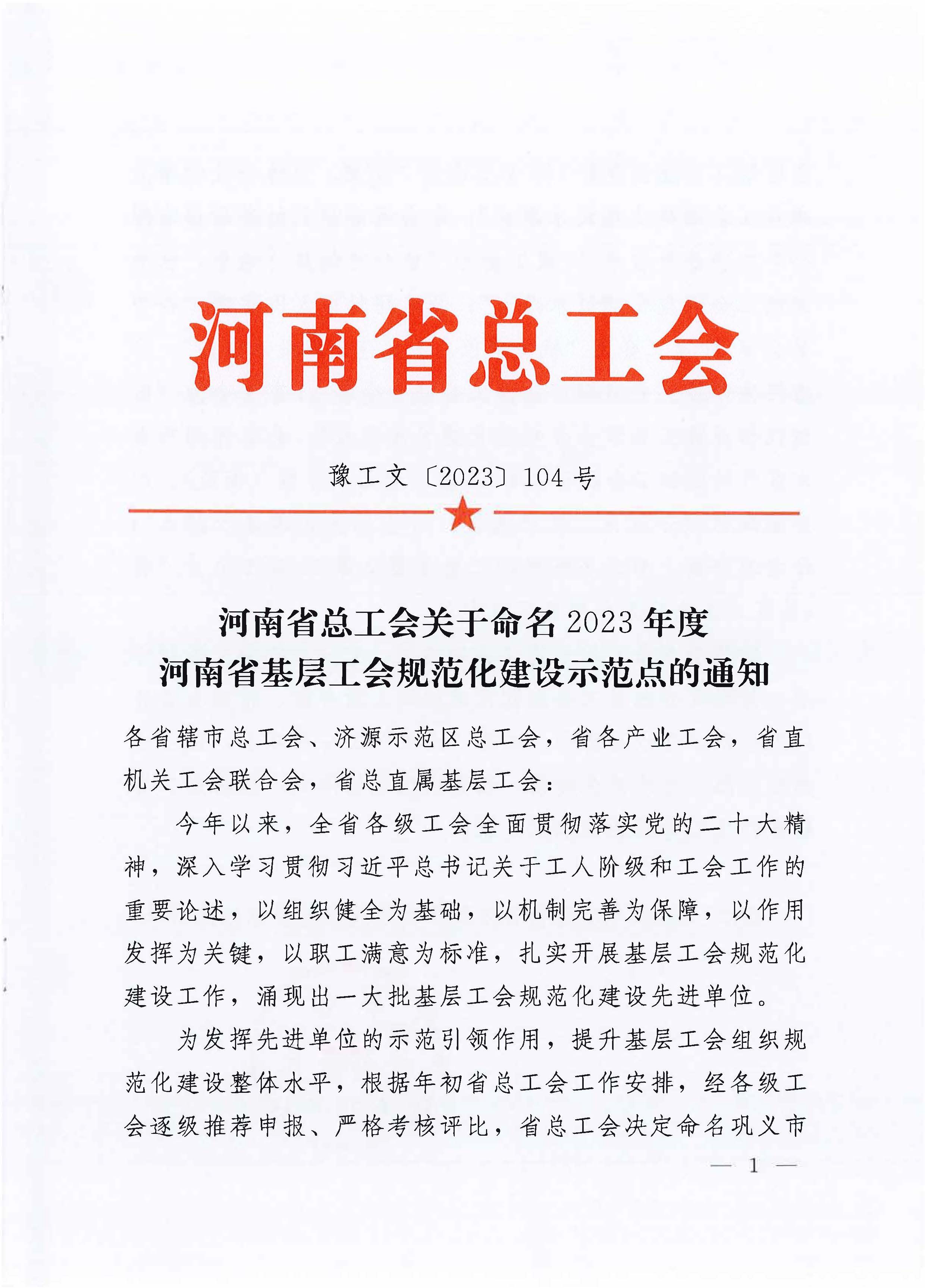 近日,河南省总工会下发表彰文件,学校工会被命名为“2023年度河南省基层工会规范化建设示范点”。