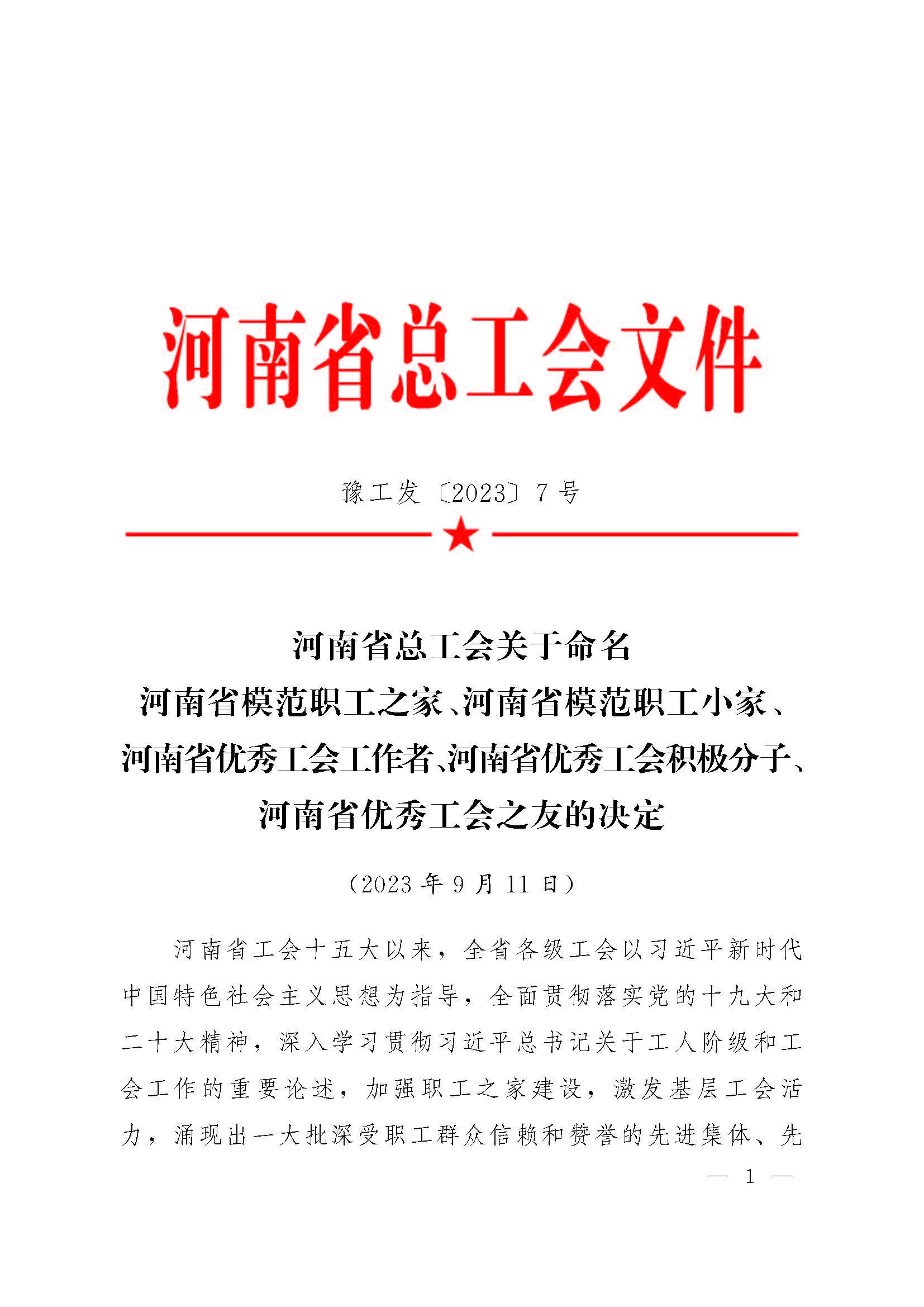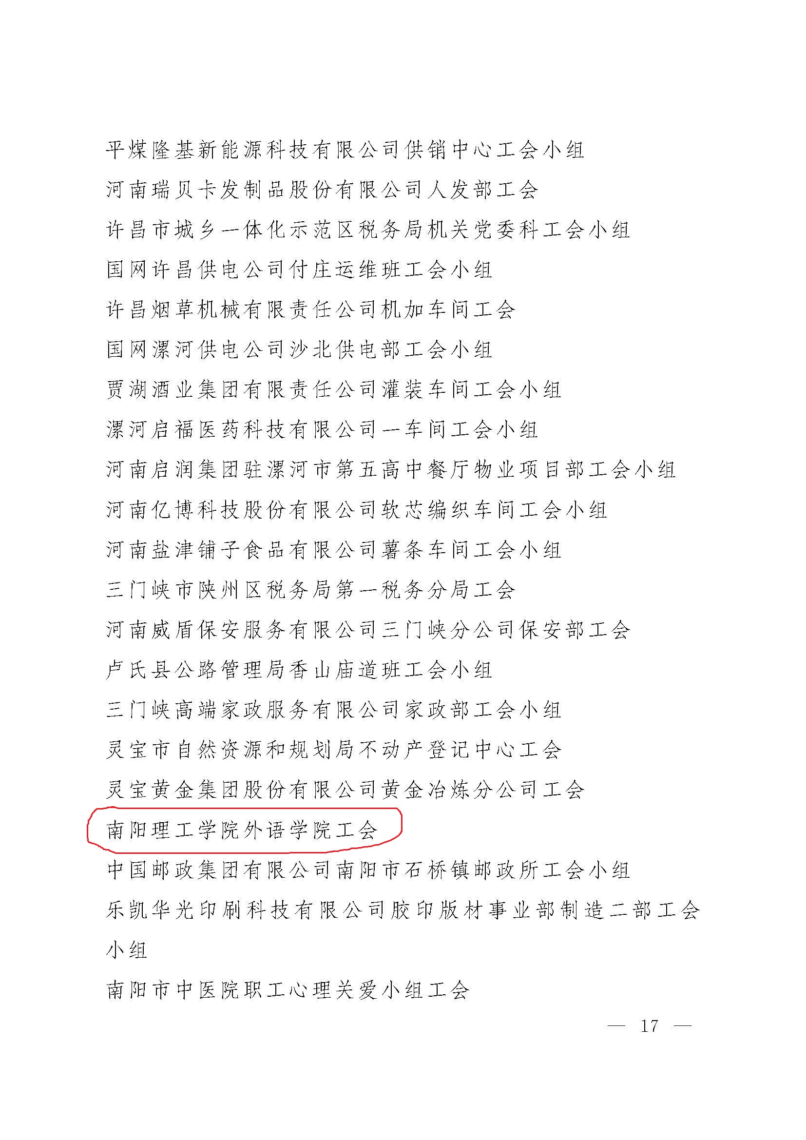 近日,河南省总工会下发表彰文件,外国语学院分工会被命名为“河南省模范职工小家”。