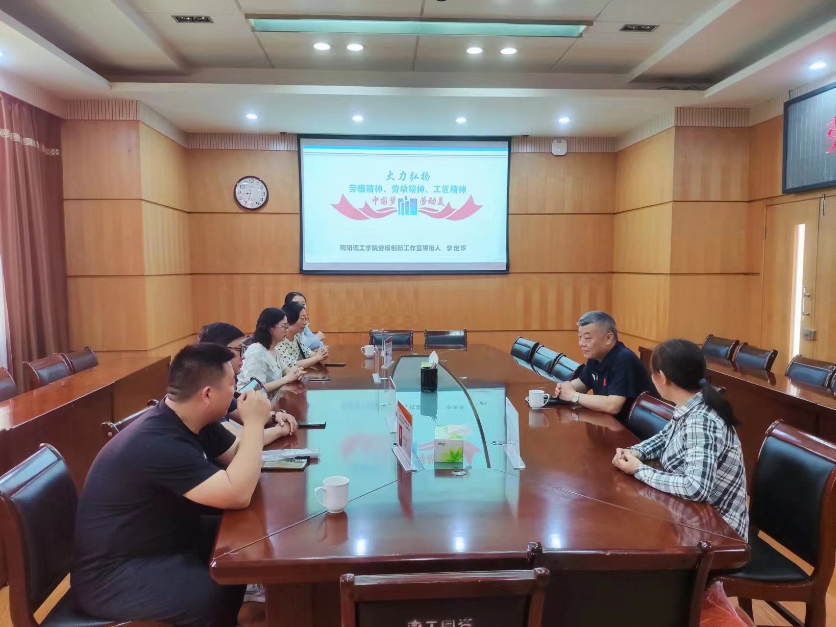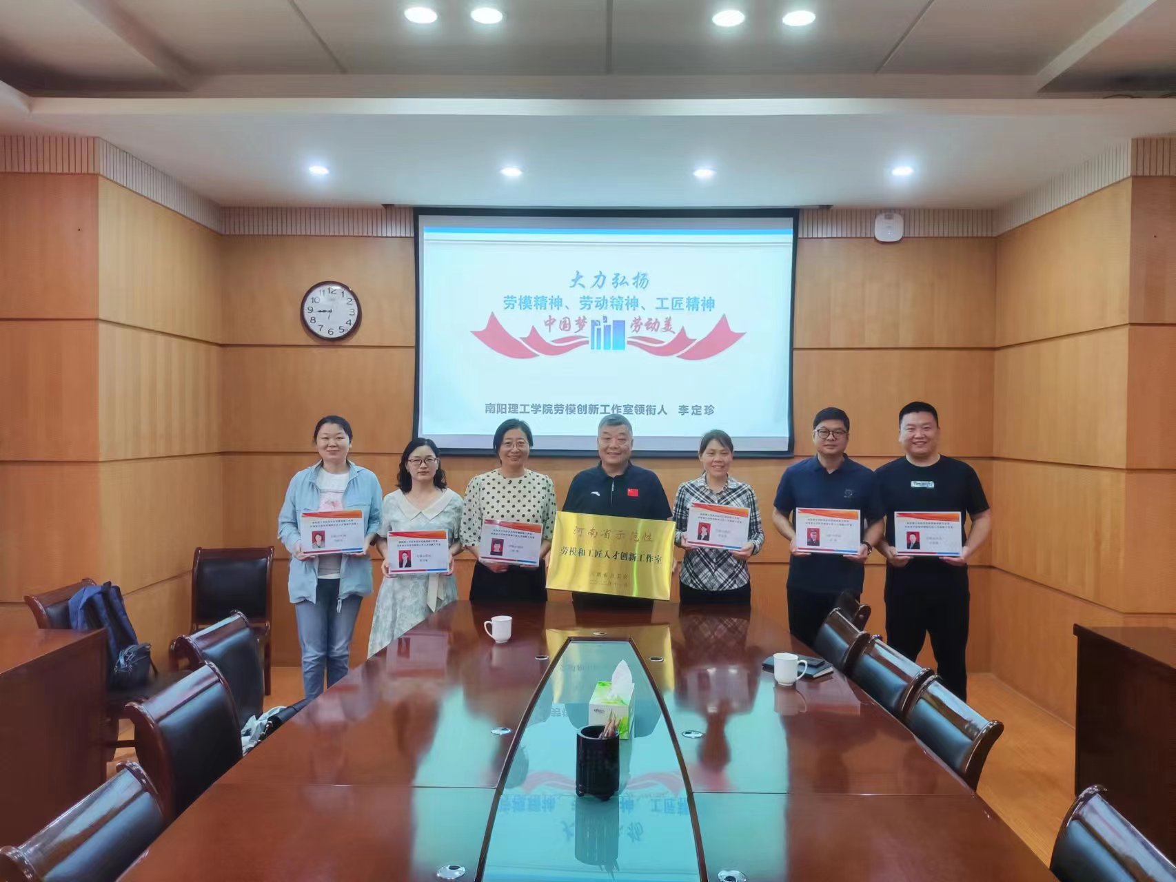 近日,河南省总工会下发表彰决定,我校“李定珍劳模创新工作室”荣获“河南省示范性劳模和工匠人才创新工作室”荣誉,校工会在中込会馆第二会议室隆重举行授牌仪式,并为6名劳模工作室骨干颁发“劳模示范岗”证书。