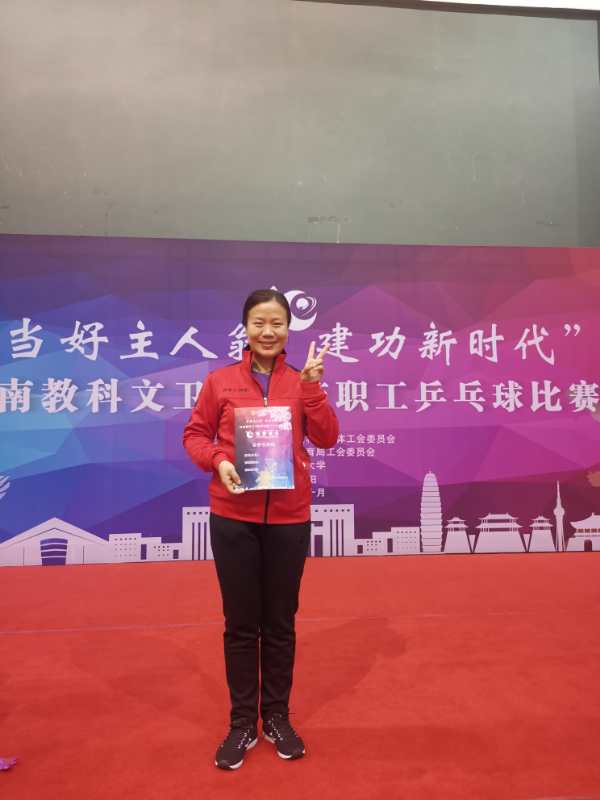 10月20日,由河南省教科文卫体工会、河南省体育局工会主办,河南科技大学承办的“当好主人翁、建功新时代”河南教科文卫体系统职工乒乓球比赛在河南科技大学落下帷幕。我校教师仝飞飞获得女子青年组单打比赛第四名,学校荣获“优秀组织奖”。